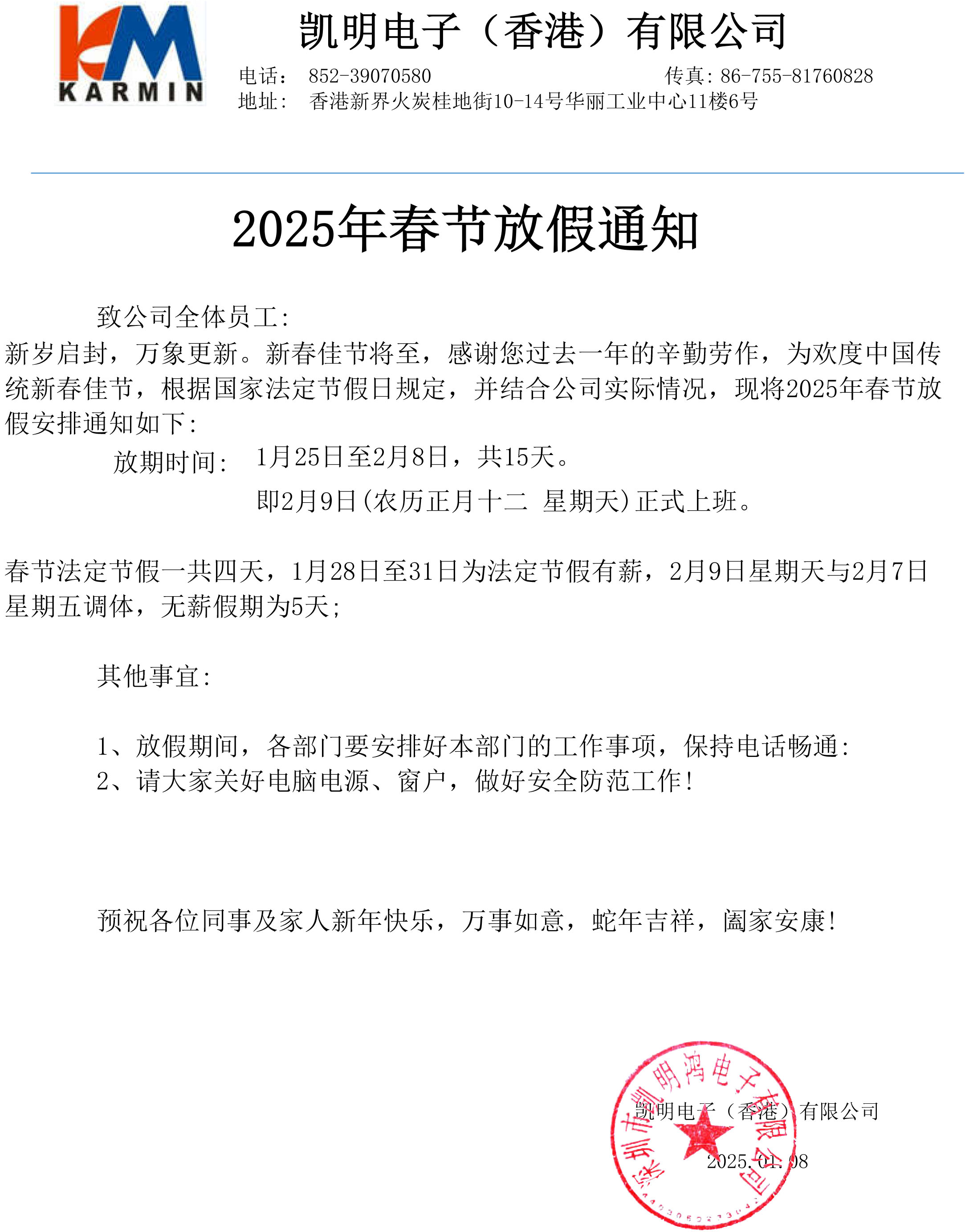 2025年春節(jié)放假通知
