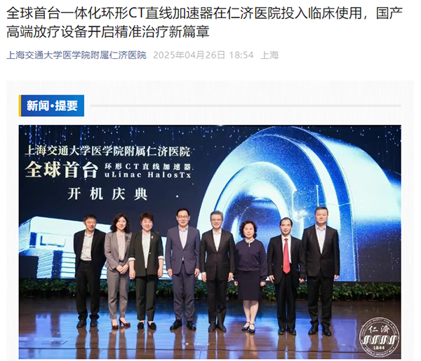 由我國(guó)自主研發(fā)的全球首臺(tái)一體化環(huán)形 CT 直線加速器 uLinac HalosTx 宣布正式開(kāi)機(jī),這標(biāo)志著我國(guó)高端醫(yī)療裝備研發(fā)與臨床應(yīng)用實(shí)現(xiàn)重大突破,也為國(guó)內(nèi)腫瘤放射治療領(lǐng)域樹立了新標(biāo)桿。