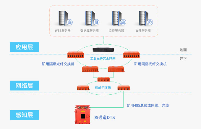 TB系列集線器/中繼器產(chǎn)品可適用于負(fù)責(zé)環(huán)境下系統(tǒng)組網(wǎng)設(shè)備間的通信,以煤礦監(jiān)控系統(tǒng)為例,可適用于各層級(jí)間的不同信號(hào)類型轉(zhuǎn)化。