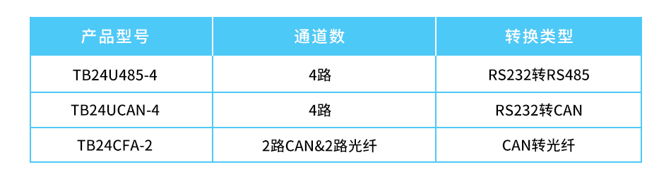 TB系列集線器/中繼器基于不同的總線網(wǎng)絡(luò)應(yīng)用進(jìn)行開(kāi)發(fā),可支持多種協(xié)議類型進(jìn)行應(yīng)用,可支持RS232轉(zhuǎn)RS485(TB24U485-4);RS232轉(zhuǎn)CAN(TB24UCAN-4);CAN轉(zhuǎn)光纖(TB24CFA-2)。