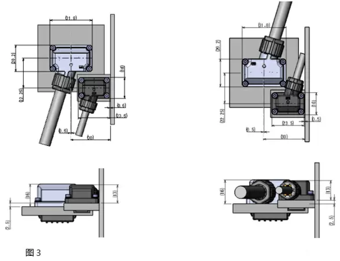 具有螺絲不容易從外罩脫落的構(gòu)造,實現(xiàn)了卓越的作業(yè)性。根據(jù)零件搭載方式的不同,即使使用同一零件的電纜線也可以實現(xiàn)180度方向的翻轉(zhuǎn),顧客可根據(jù)用途選擇(圖4)。